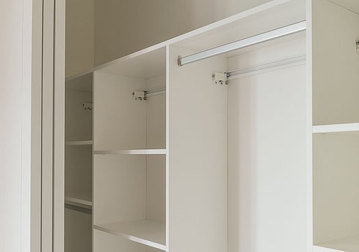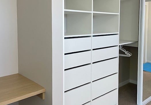 Yes, we can incorporate drawers, shelves and hanging space into your reach-in wardrobe design. The final layout will depend on your available space and your storage needs.