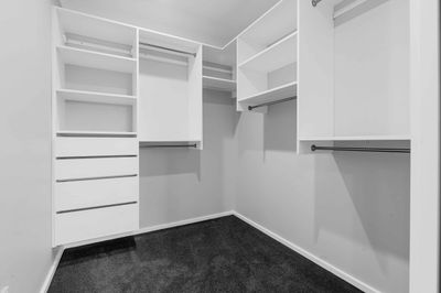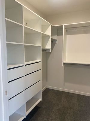 - A customisable walk-in, walk-through or reach-in wardrobe system