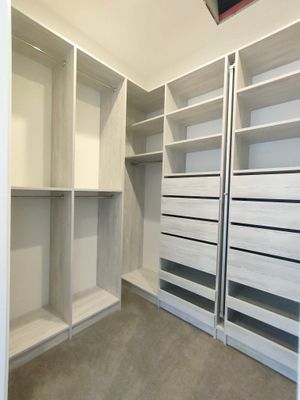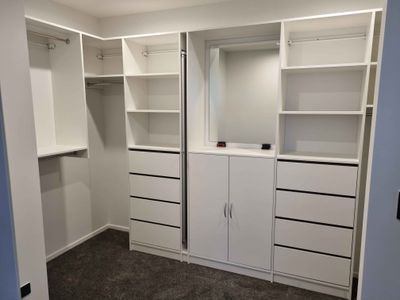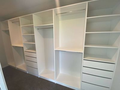 - A customisable walk-in, walk-through or reach-in wardrobe system