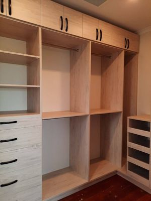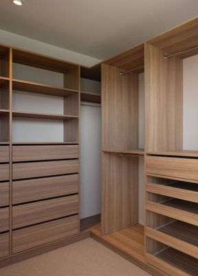 - A customisable walk-in, walk-through or reach-in wardrobe system